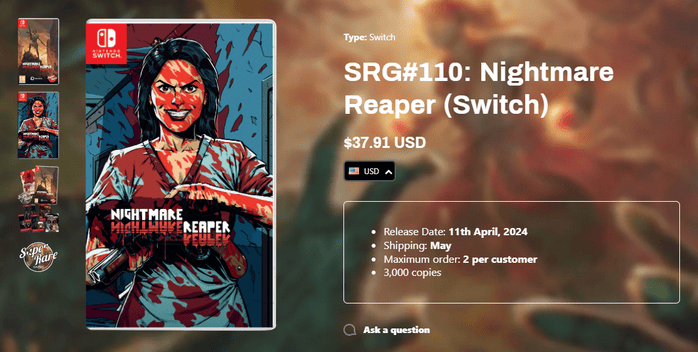 九游娱乐,九游娱乐官网,九游app,九游下载安卓,九游体育,九游,九游下载,九游体育娱乐,九游体育app,九游体育网页版,九游真人,九游棋牌,九游捕鱼,九游娱乐靠谱吗,九游体育官网,九游官网《Nightmare Reaper》的NS实体版售价为37.91美元,包含两款不同设计风格的卡带盒封面,内部艺术图,全彩手册,专属贴纸,以及一套包含3张的集换式卡牌(共五种)。此外,玩家还可单独购买售价3.16美元的卡牌包(含3张卡,每位玩家限购5份,有概率开出限定闪卡)。